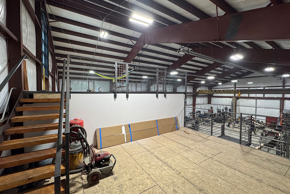 SKOL Studio’s work merges careful craftsmanship with impressive artistic talent, and the owner needed a space that reflected this while allowing for the expansion of SKOL Studio’s operations. This new metal design studio has an eye-catching monitor-style roof and a clear-span floorplan, creating ample space for housing machinery and fabricating products. The building can also accommodate a top-running crane with a 10-ton weight capacity, allowing for easy movement of materials while enhancing productivity for artisans.